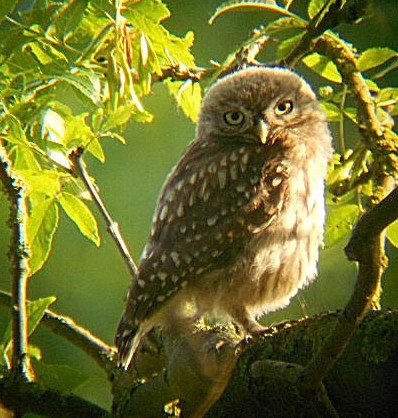 The family of four LITTLE OWLS that successfully nested in the box connected to the building girders (Sally Douglas)